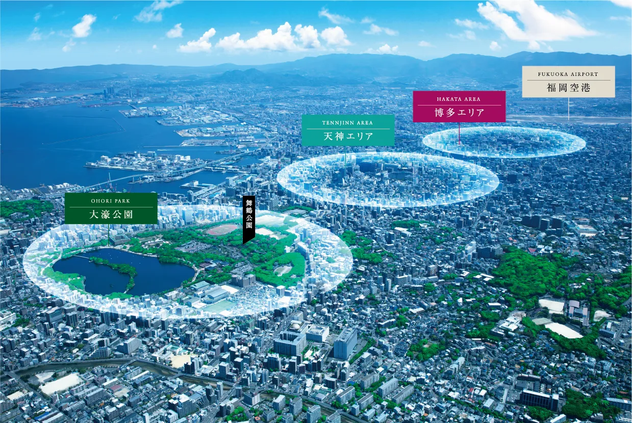 福岡市の中心に位置する大濠公園は、都市にいながら自然と調和した暮らしを叶える「セントラルパーク構 想」の象徴的なエリアです。この構想は、大濠公園を中心に、歴史・芸術文化・観光の発信拠点としての魅力 を高めながら、公園全体をひとつの“ミュージアム空間”として捉えた、先進的なまちづくりのビジョンです。 自然と文化が美しく融合する、新しい都市のカタチが、ここから始まります。